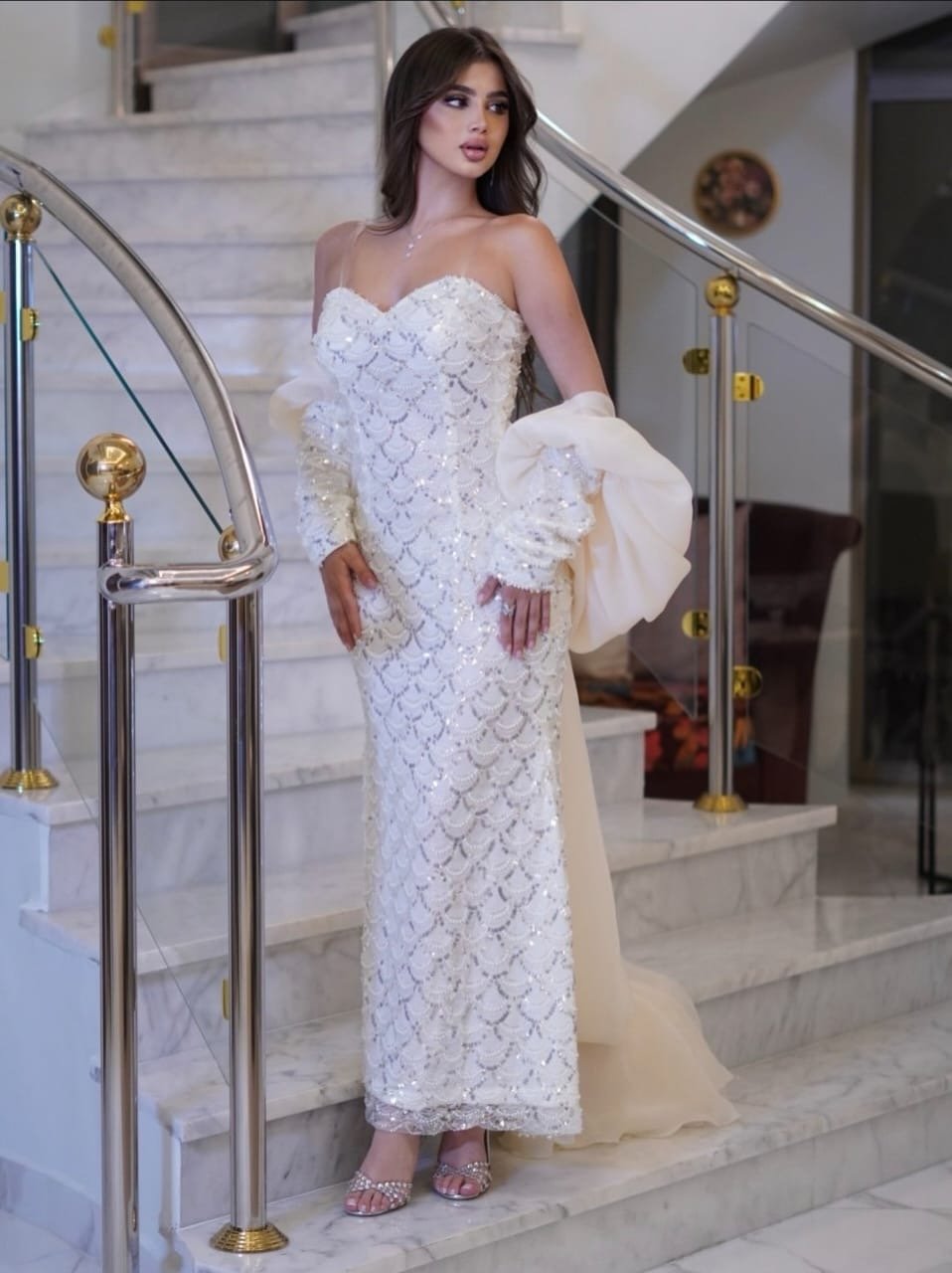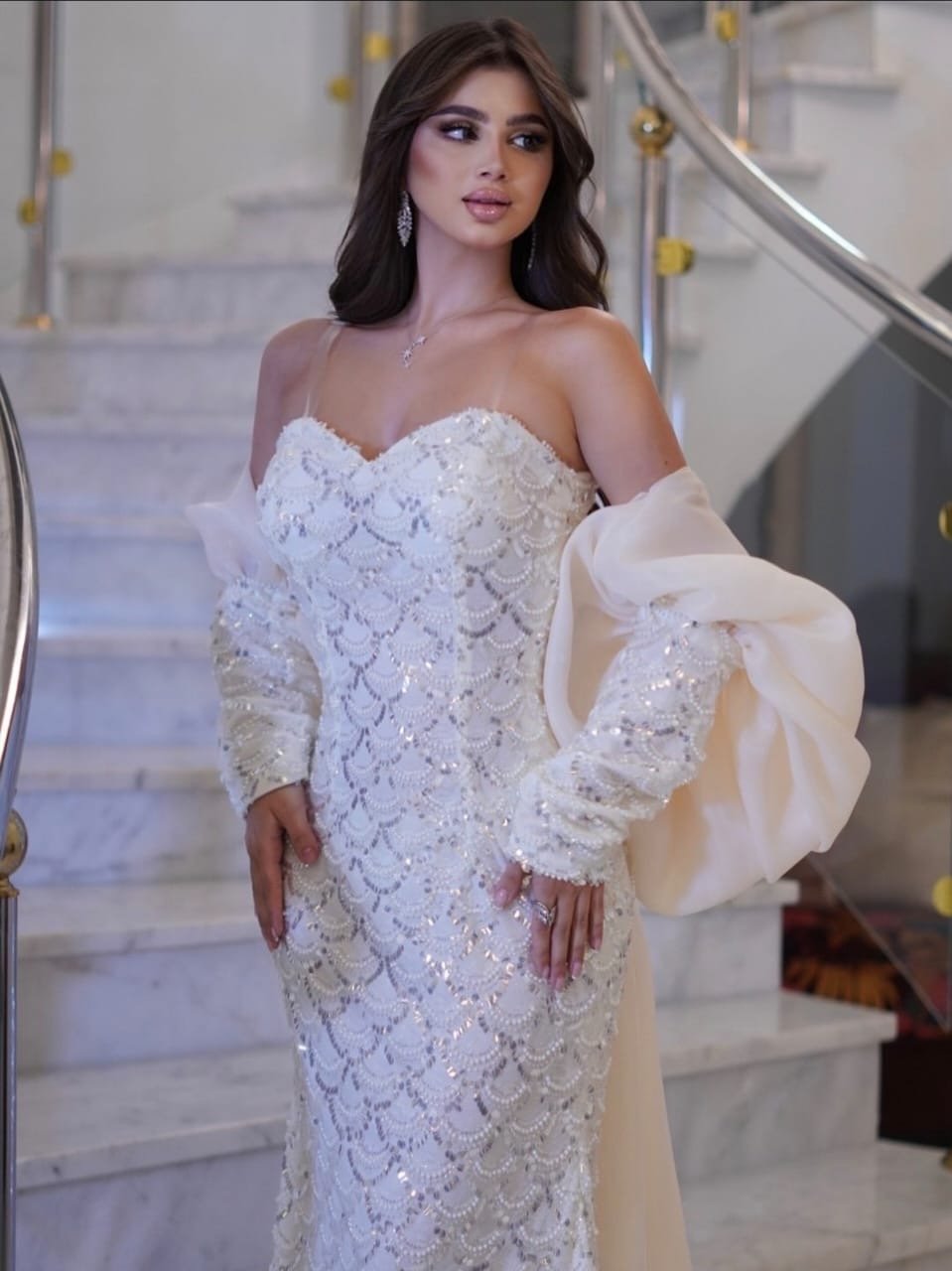 فستان سهرة فاخر باللون البيج البراق، مصمم ليمنحك إطلالة راقية تلفت الأنظار في كل مناسبة. يتميز بقصة أنثوية أنيقة تنسدل بانسيابية وتحدد القوام برقي. بفضل لونه المحايد ولمعانه الجذاب، يعد خياراً مثالياً للسهرات والمناسبات الخاصة.