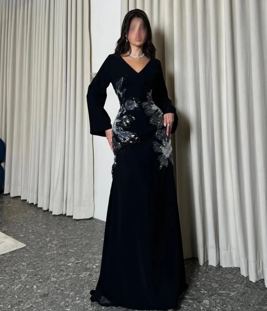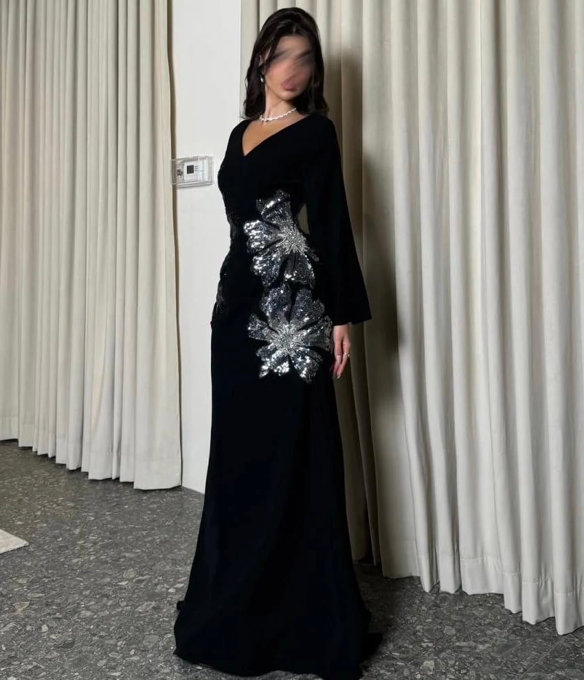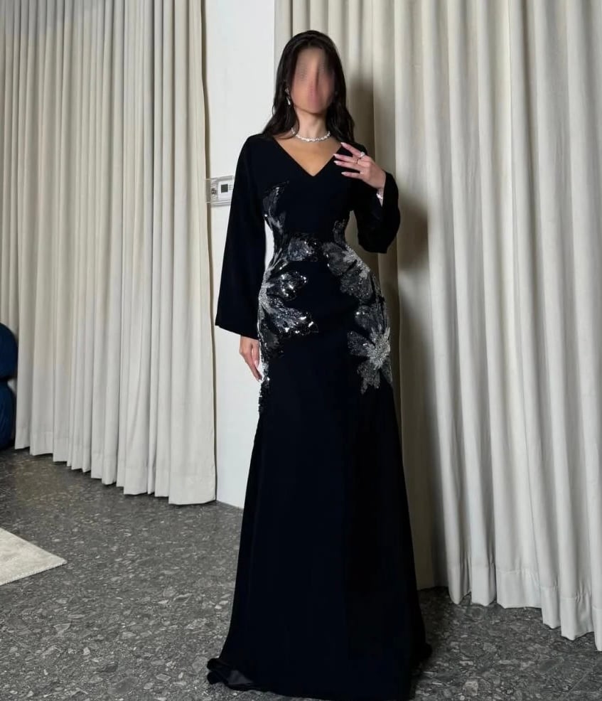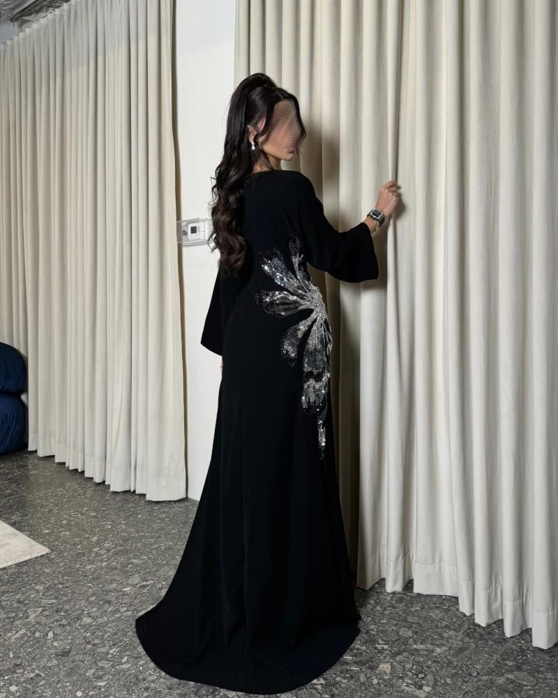 فستان سهرة أسود بنفَس ملكي… يحكي فخامة دون ما يحاول.