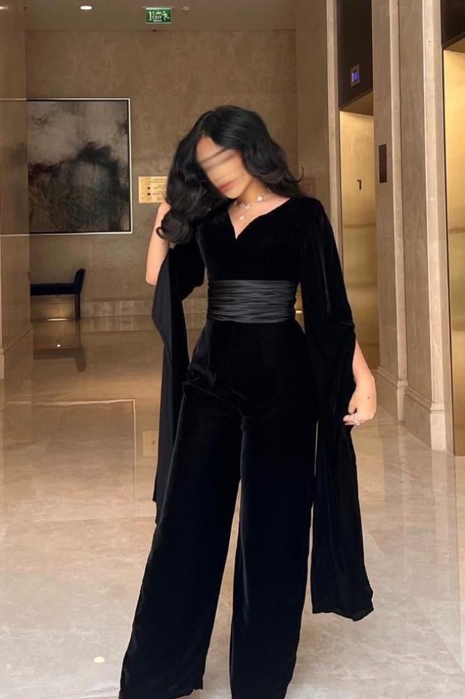 جمبسوت أسود من المخمل الناعم… قطعة تجمع الراحـة مع الهيبة.