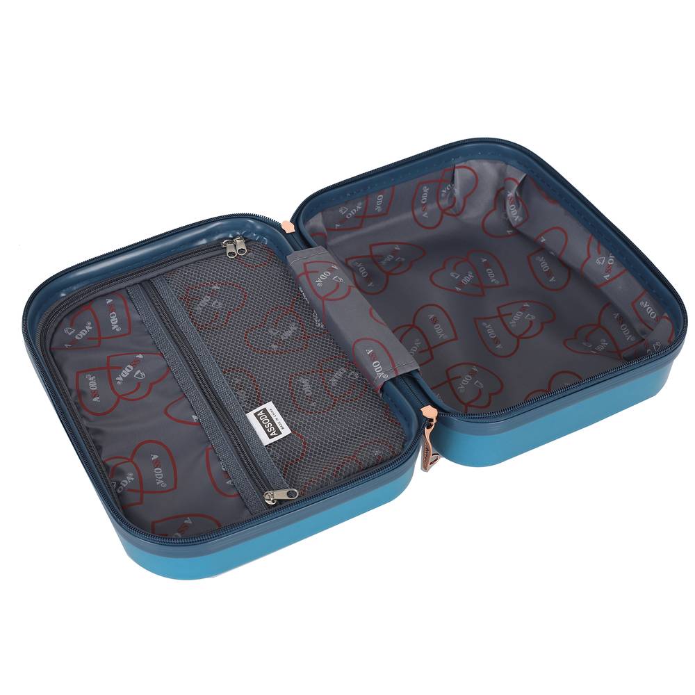 - هذه المجموعة هي الخيار المثالي للعروس التي تبحث عن حقيبة سفر أنيقة وآمنة بتصميم جذاب . يمكن استخدامها لتخزين الملابس، المستلزمات الشخصية، والمكياج بشكل منظم وسهل الوصول إليه.