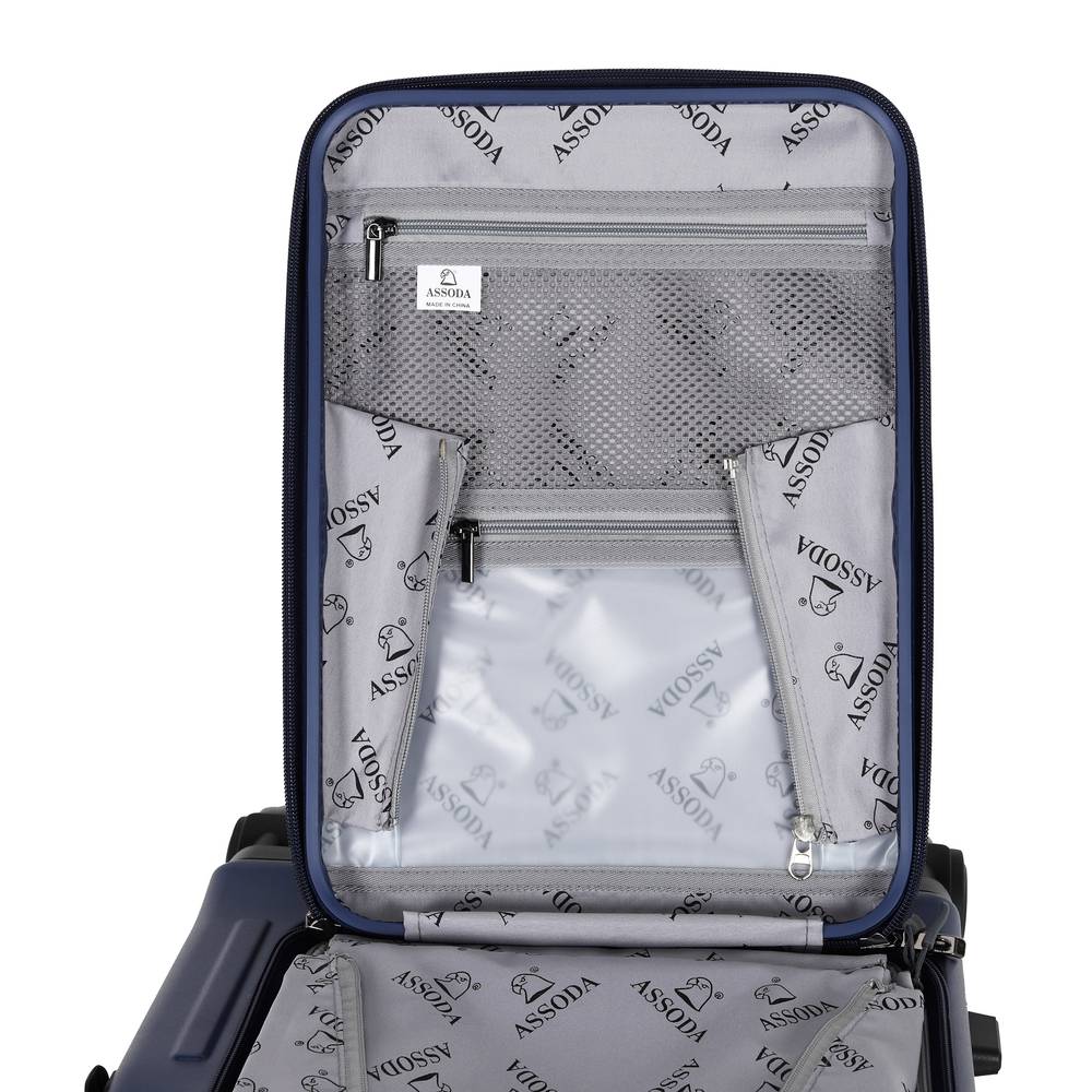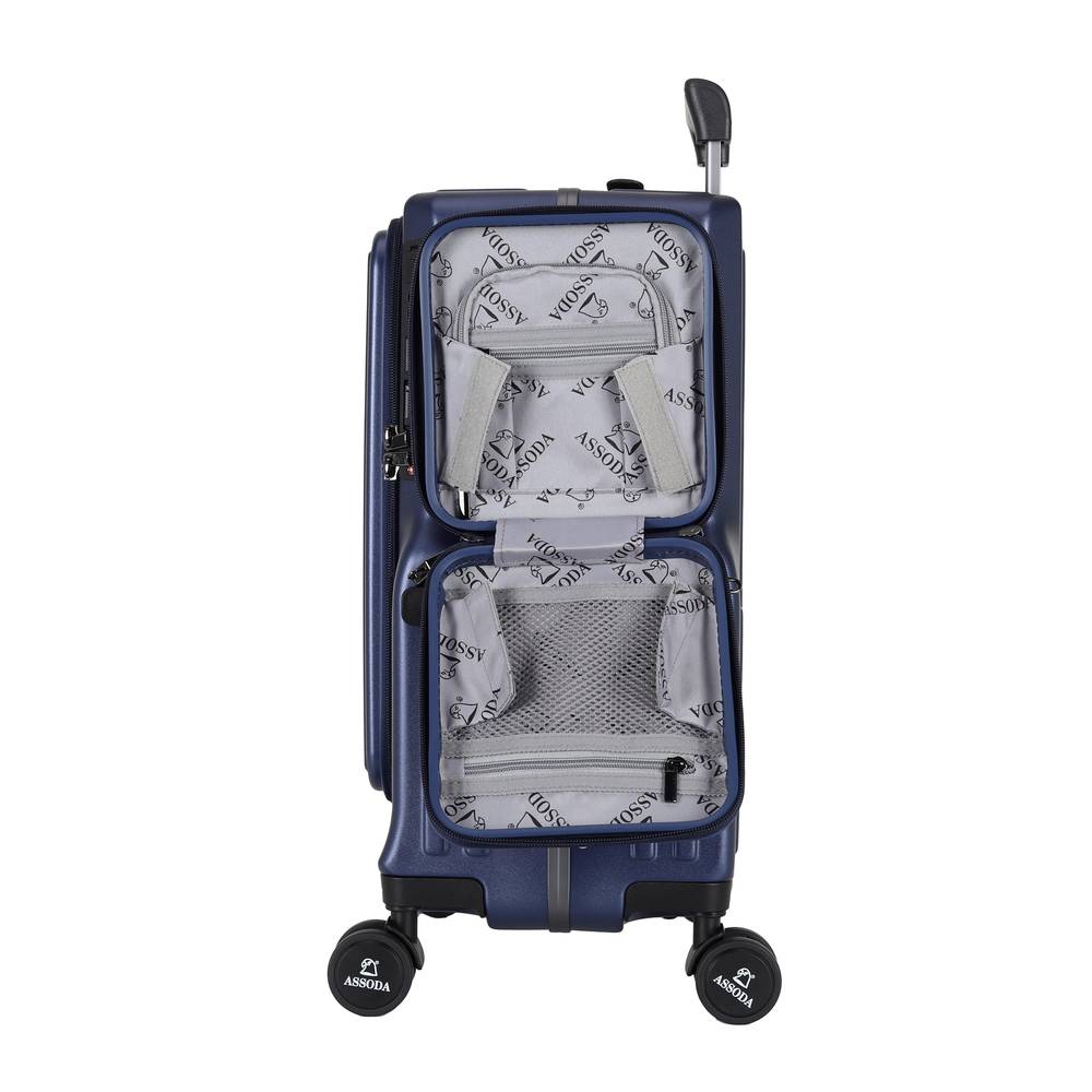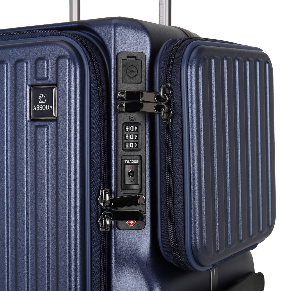 شنطة سفر زرقاء بعجلات دوارة 360 مع قفل أمان مدمج – تصميم أنيق وعصري