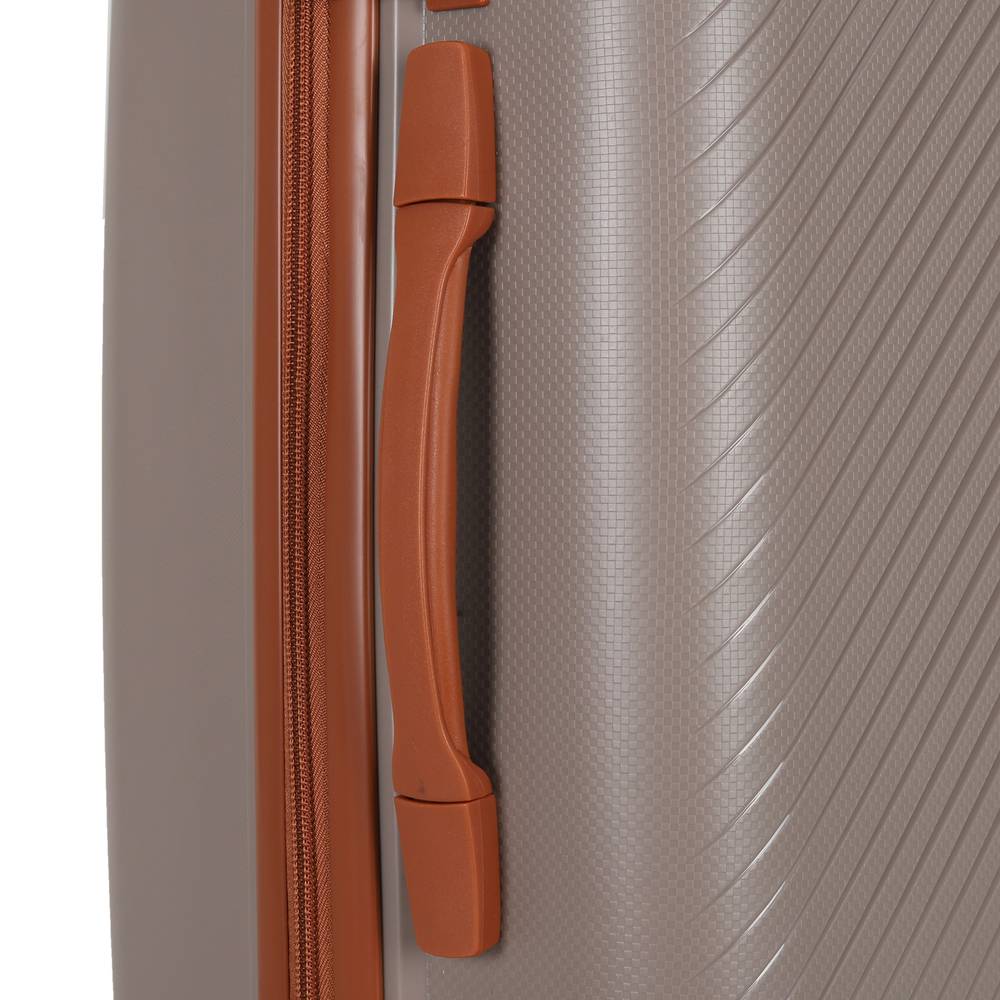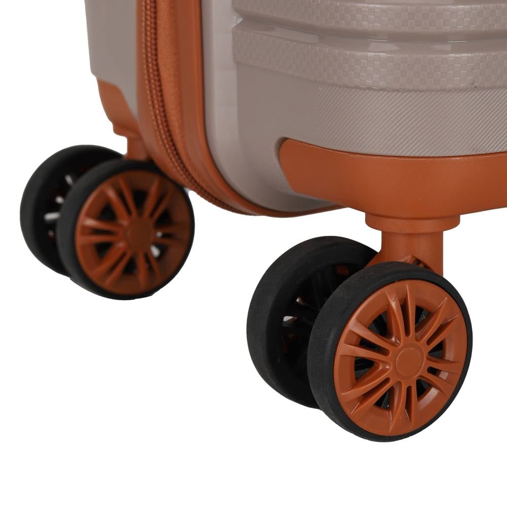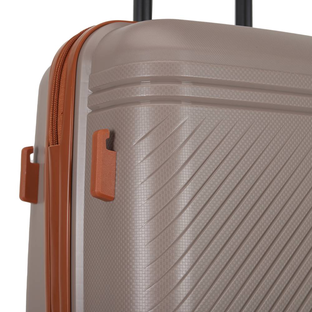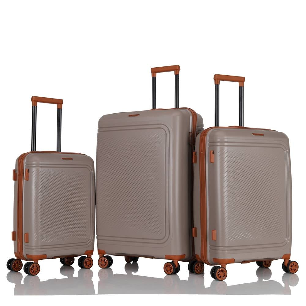 أضيفي لمسة من الأناقة لرحلاتك مع هذا الطقم العملي من شنط السفر باللون البني العصري مع تفاصيل جانبية أنيقة باللون البني الغامق. يتكون الطقم من 3 مقاسات متنوعة تناسب جميع احتياجاتك: حقيبة كبيرة للرحلات الطويلة، حقيبة متوسطة للسفر القصير، وحقيبة كابينة صغيرة تناسب المقصورة.