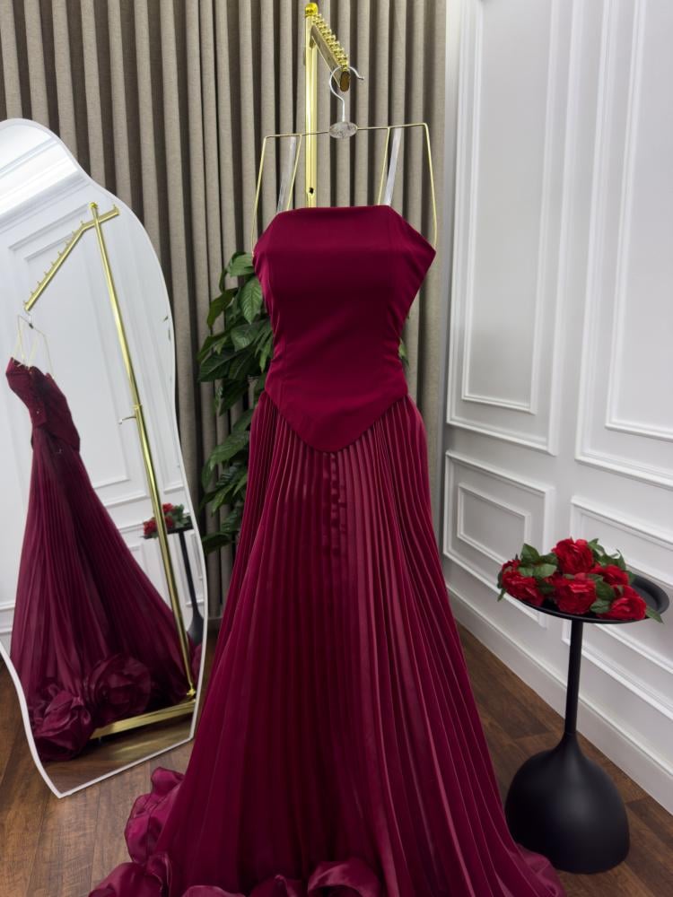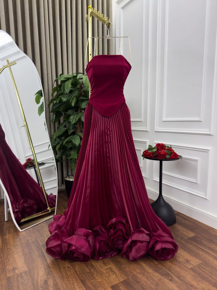تميزي بإطلالة راقية مع هذا الفستان الفاخر باللون العنابي العميق. تصميمه يجمع بين الأناقة والفخامة، مع طيات انسيابية وتفاصيل ورود أنيقة على الحافة السفلية تضيف لمسة رومانسية مبهرة. خامته الفاخرة تمنحك راحة وأناقة في آن واحد، مما يجعله الخيار المثالي للأعراس، الخطوبة، وحفلات السهرة المميزة.