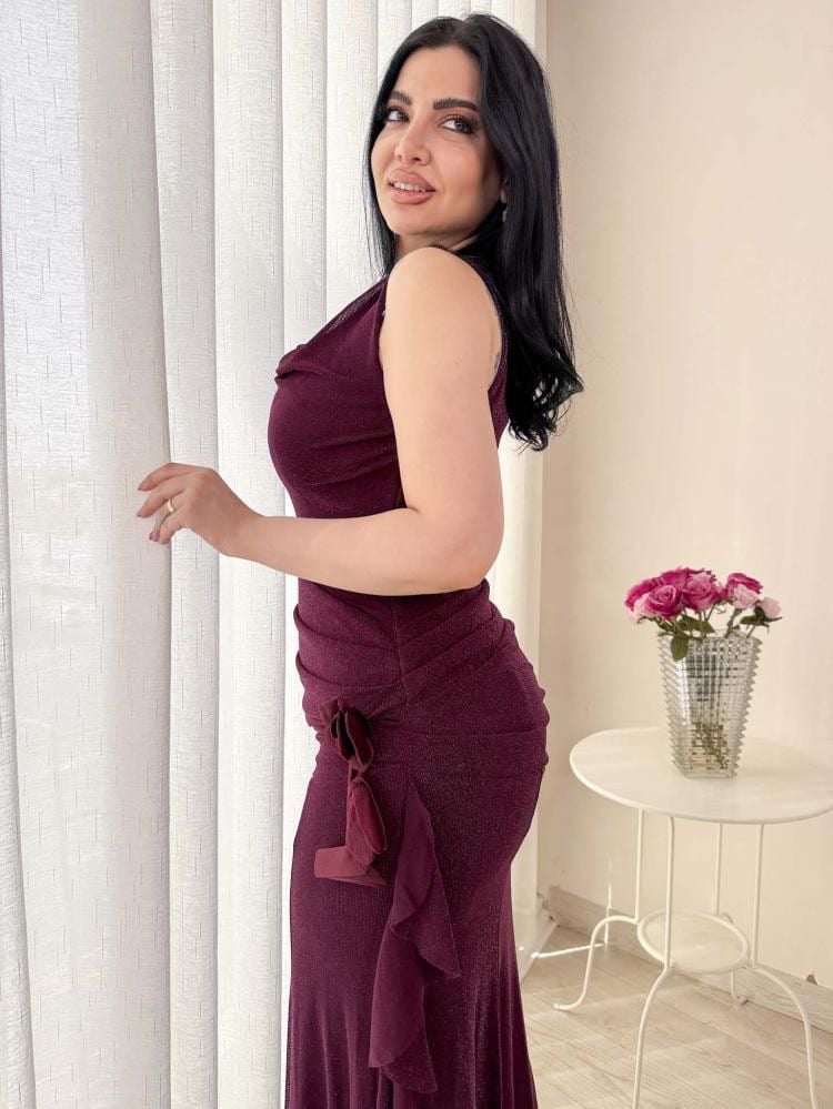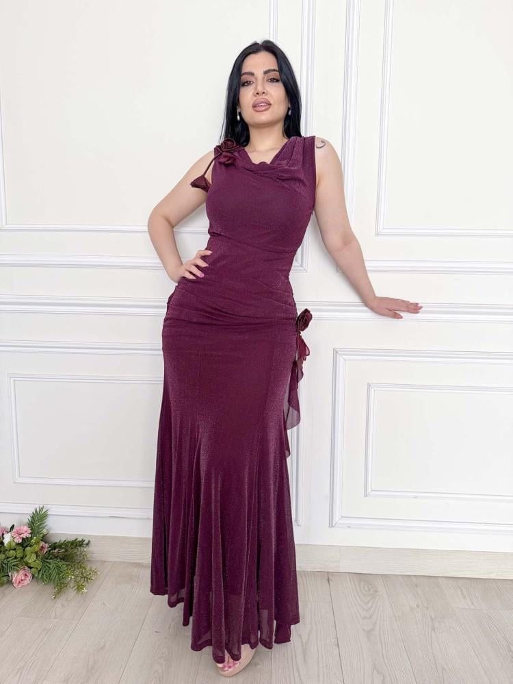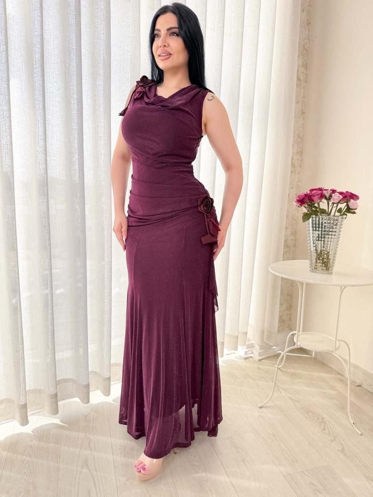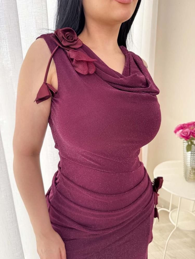 تميزي بإطلالة أنثوية ناعمة مع هذا الفستان الخمري المصمم بقصة كلاسيكية تبرز جمال القوام. يأتي الفستان بدون أكمام، مع لمسات رقيقة من التموجات على الصدر ولمسات زهرية على الكتف والخصر تمنحه طابعًا أنثويًا بسيطًا ومميزًا. القماش بترتر ناعم يمنح لمعة خفيفة وانسيابية مثالية عند الحركة، مما يجعله خيارًا مثاليًا للسهرات والمناسبات العائلية وحفلات الملكة والخطوبة.