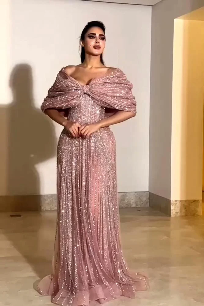 إطلالة ساحرة مليئة بالفخامة مع فستان لورين المصمم ليمنحك حضوراً لا يُنسى في أهم المناسبات. يأتي الفستان بلون وردي غباري (Dusty Rose) مزين بالكامل بترتر لامع يعكس الضوء بأسلوب أنيق وجذاب.