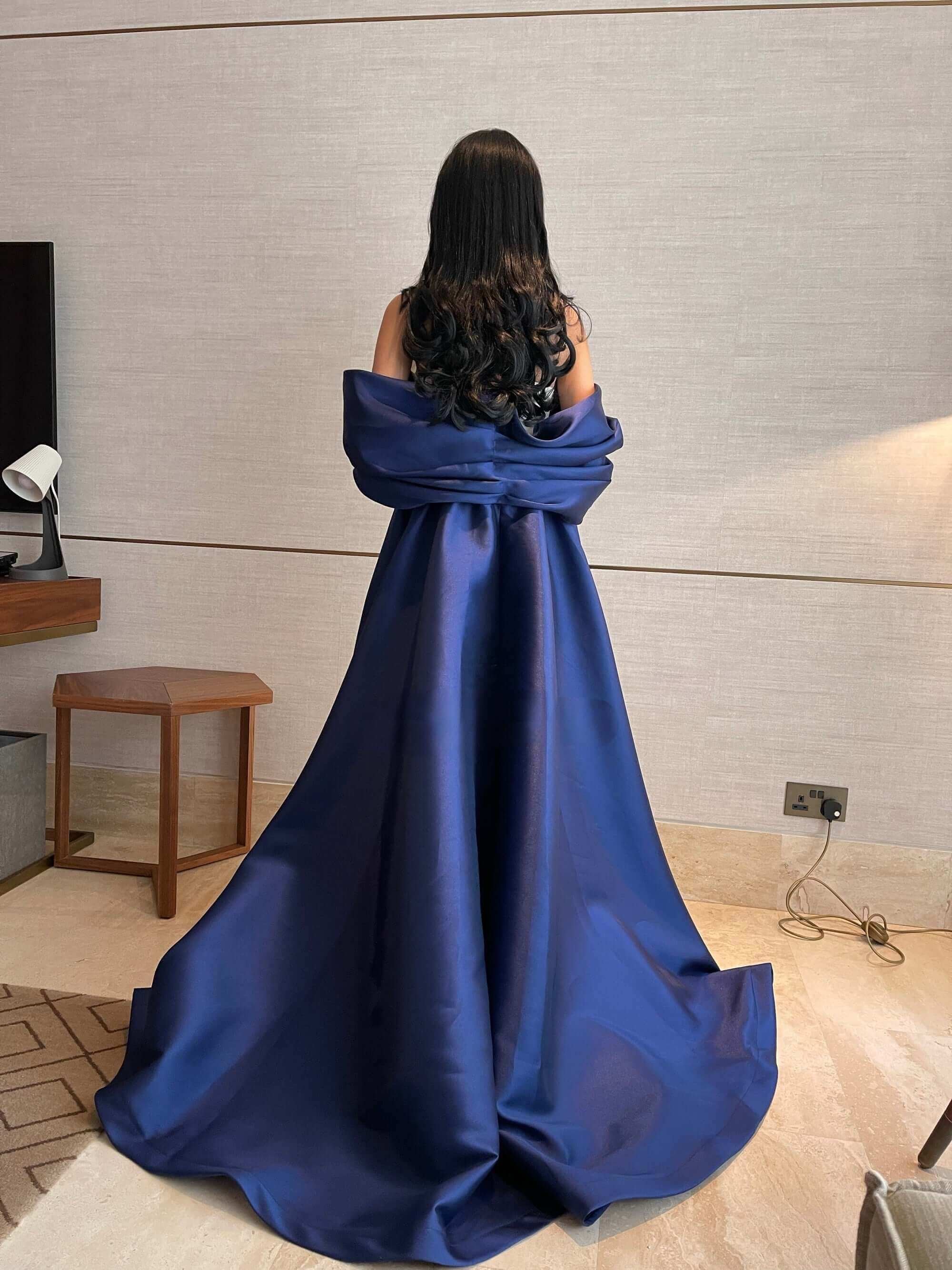 فستان سهرة فاخر باللون الأسود يجمع بين الفخامة والرقي بتصميم ملكي مميز. يتميز بصدرية بقصة أوف شولدر تلفت الأنظار وتبرز أنوثة القوام بأناقة، مع أكمام طويلة شفافة من التول المزين بالكريستال البراق لتضفي لمسة لامعة راقية. تنسدل من الخصر تنورة واسعة من قماش ساتان فاخر تمنح حضورًا قويًا، فيما يزين المعصمين ريش أسود فاخر يضفي لمسة عصرية غير تقليدية. تصميم مثالي للحفلات الكبرى، السهرات الرسمية، والمناسبات الراقية.