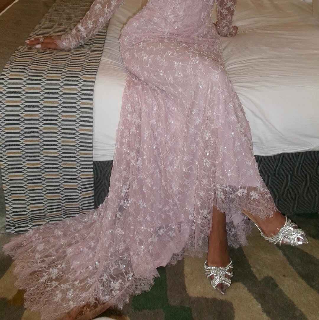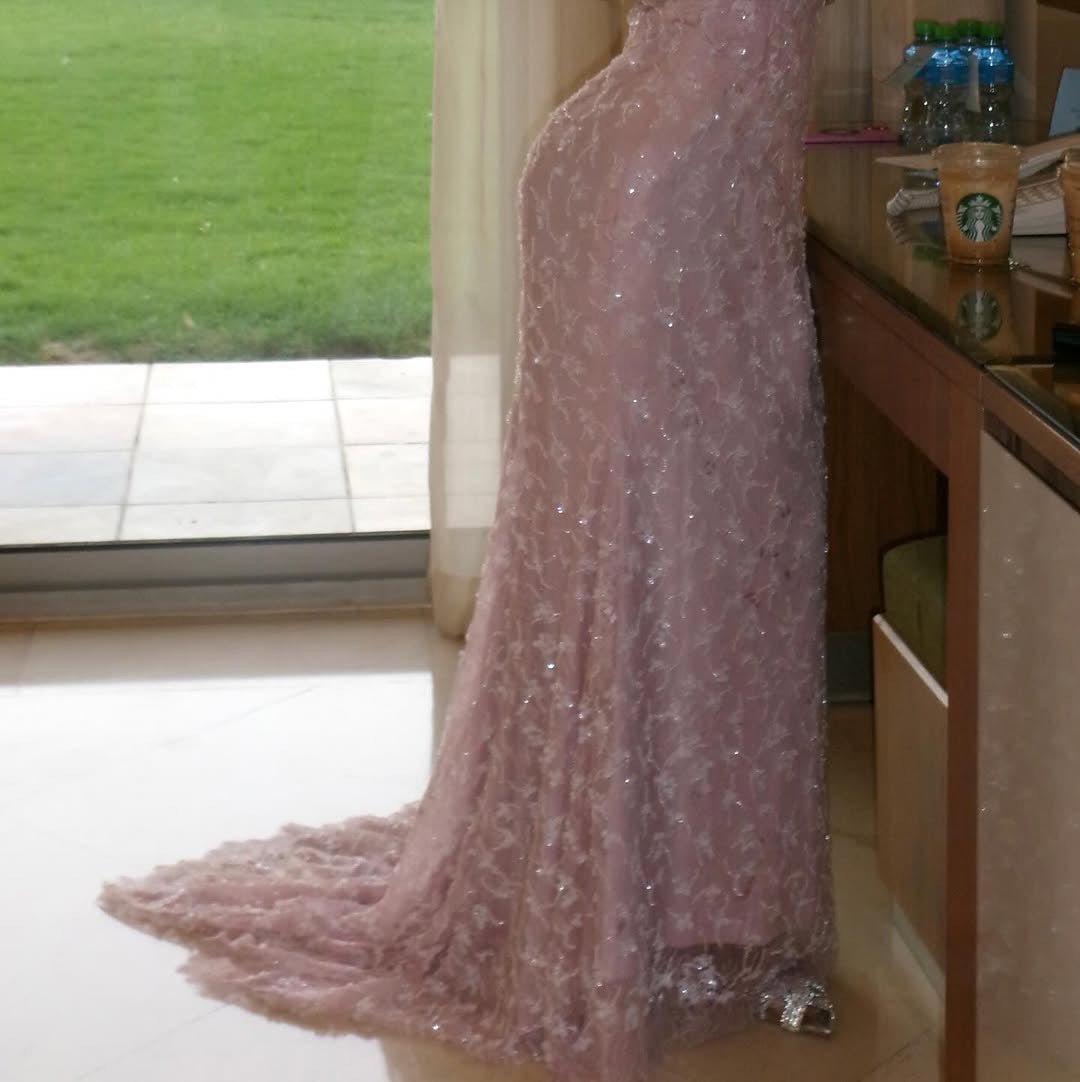 تألقي بإطلالة أنثوية حالمة مع هذا الفستان الوردي الطويل المصنوع من قماش الدانتيل الفاخر والمطرز بلمسات لامعة تضفي فخامة ورقي. يتميز بأكمام طويلة شفافة مزخرفة بنفس نقشة الفستان، مع قصة ضيقة تبرز جمال القوام وتنتهي بانسيابية أنيقة حتى الأرض. التصميم الراقي يجمع بين الرقة والفخامة، مما يجعله خيارًا مثاليًا لحفلات الزفاف، الخطوبة، أو المناسبات الخاصة. يمكن تنسيقه مع حذاء بكعب معدني وحقيبة صغيرة لمزيد من التميز.