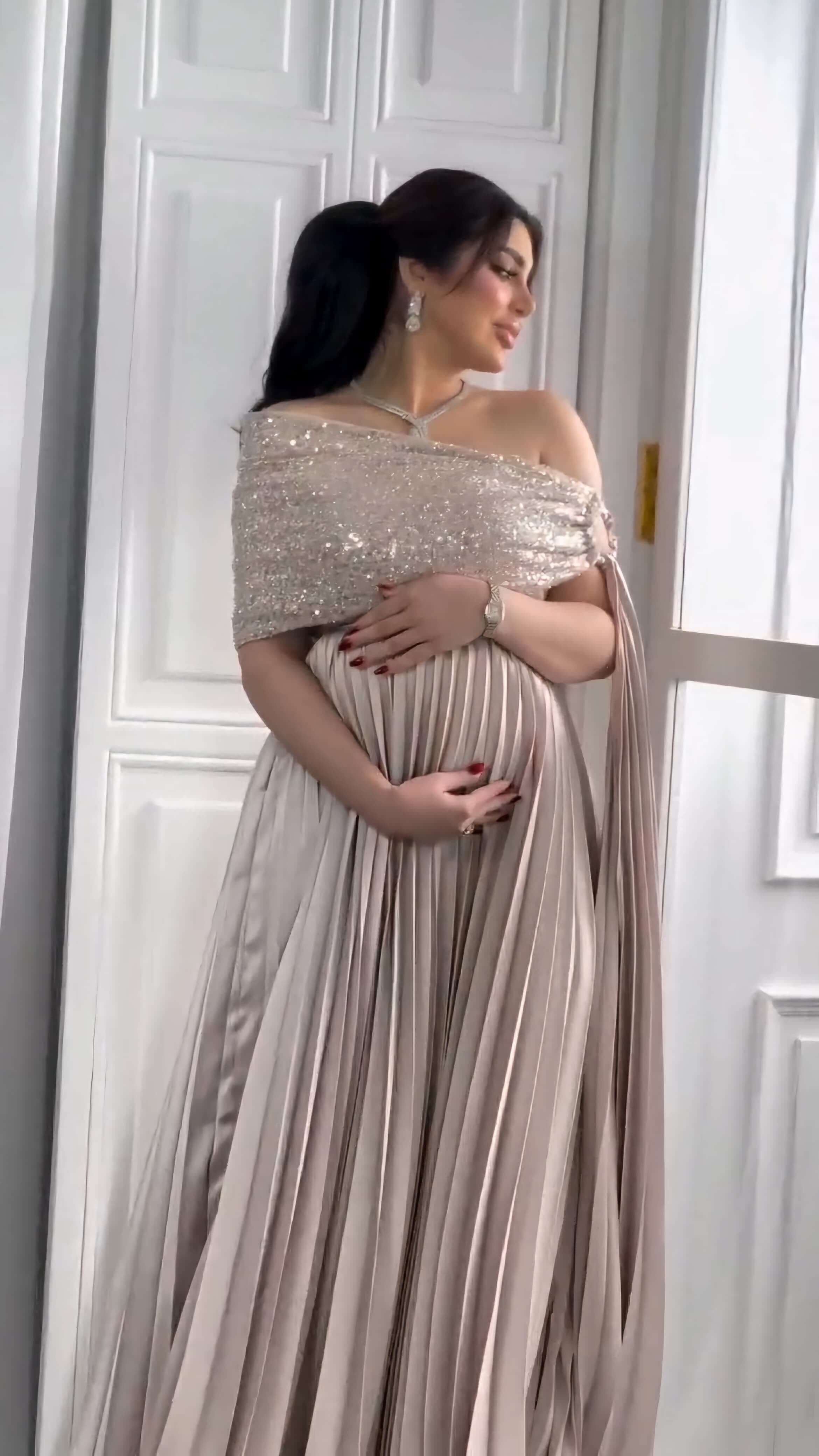 تألقي بفستان سهرة فاخر بتطريز لامع يزين منطقة الصدر وتنورة بليسيه انسيابية تزيد من جمال إطلالتك. تصميمه الراقي يمنحك حضوراً أنثوياً مميزاً ويجمع بين الفخامة والراحة ليكون خيارك المثالي في الحفلات والمناسبات الخاصة.