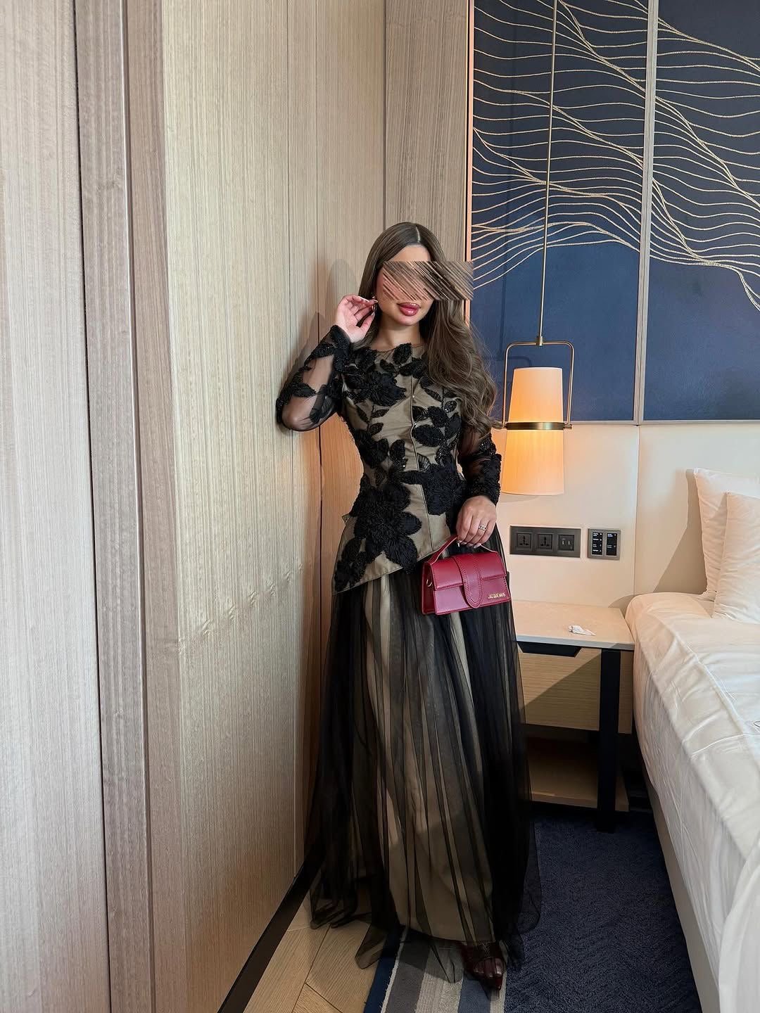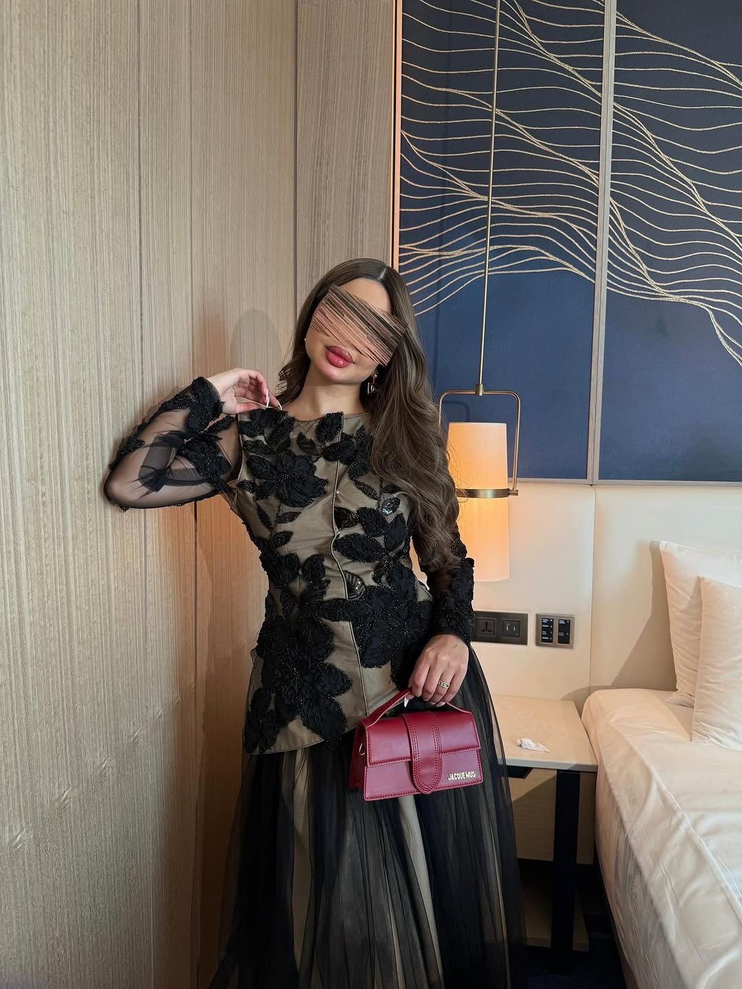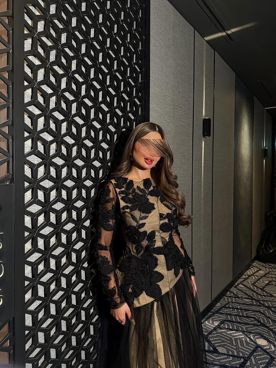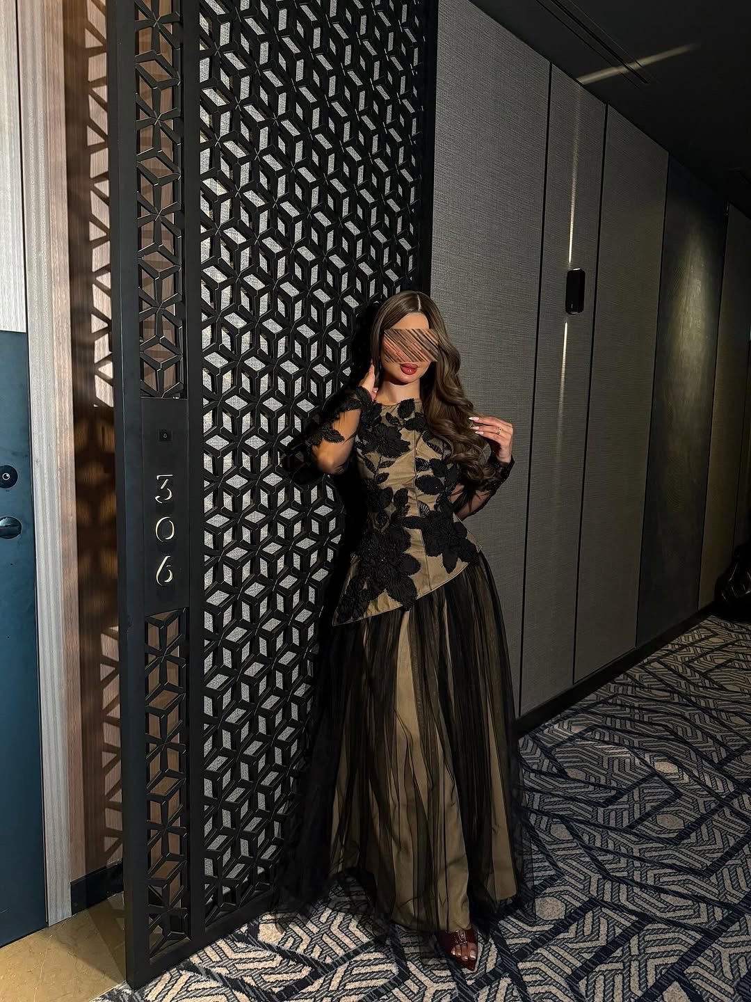 الأكمام الشفافة تضيف لمسة أنثوية خفيفة، والخصر المخصّر يعطي قوام متناسق بدون مبالغة.