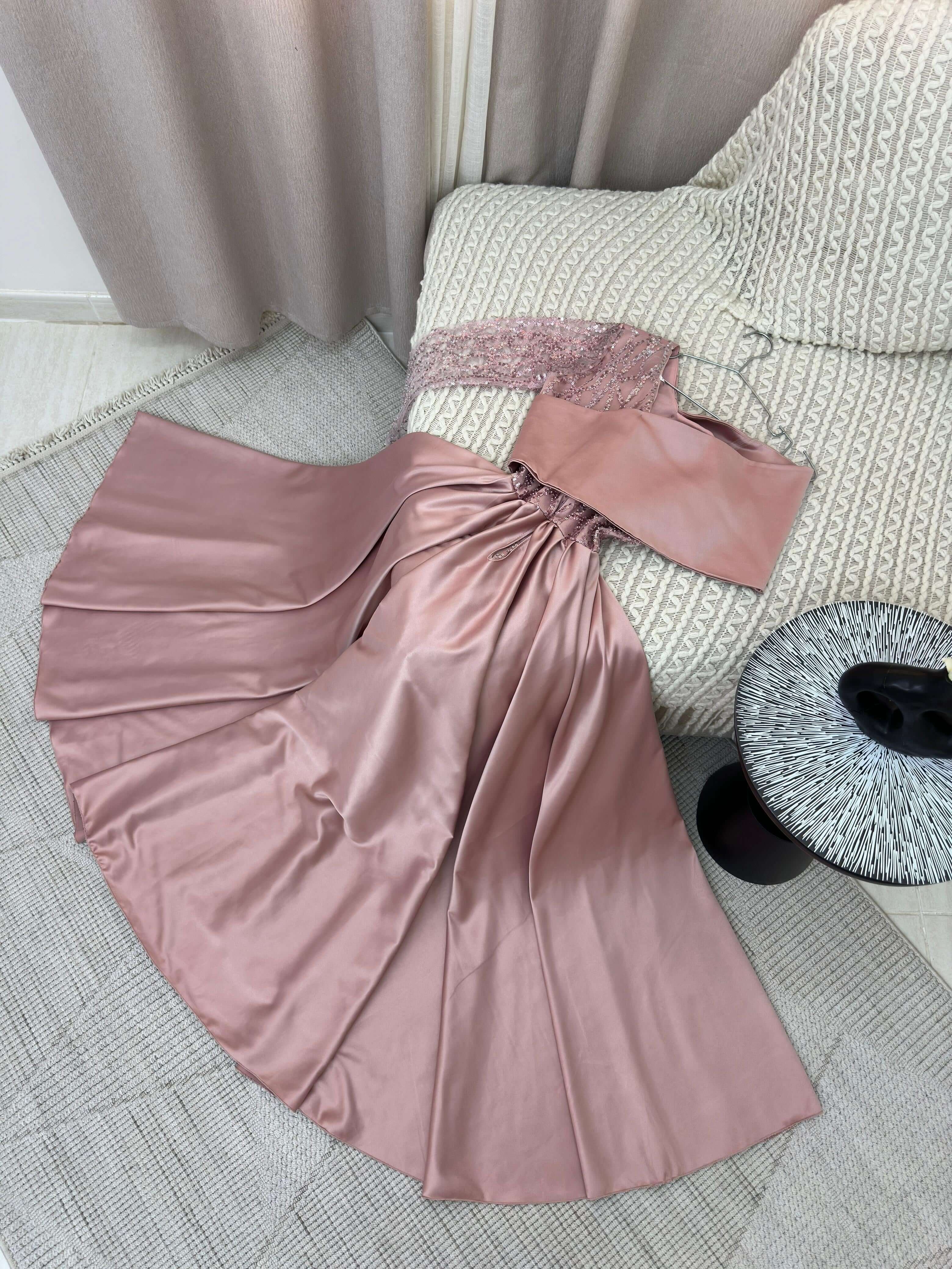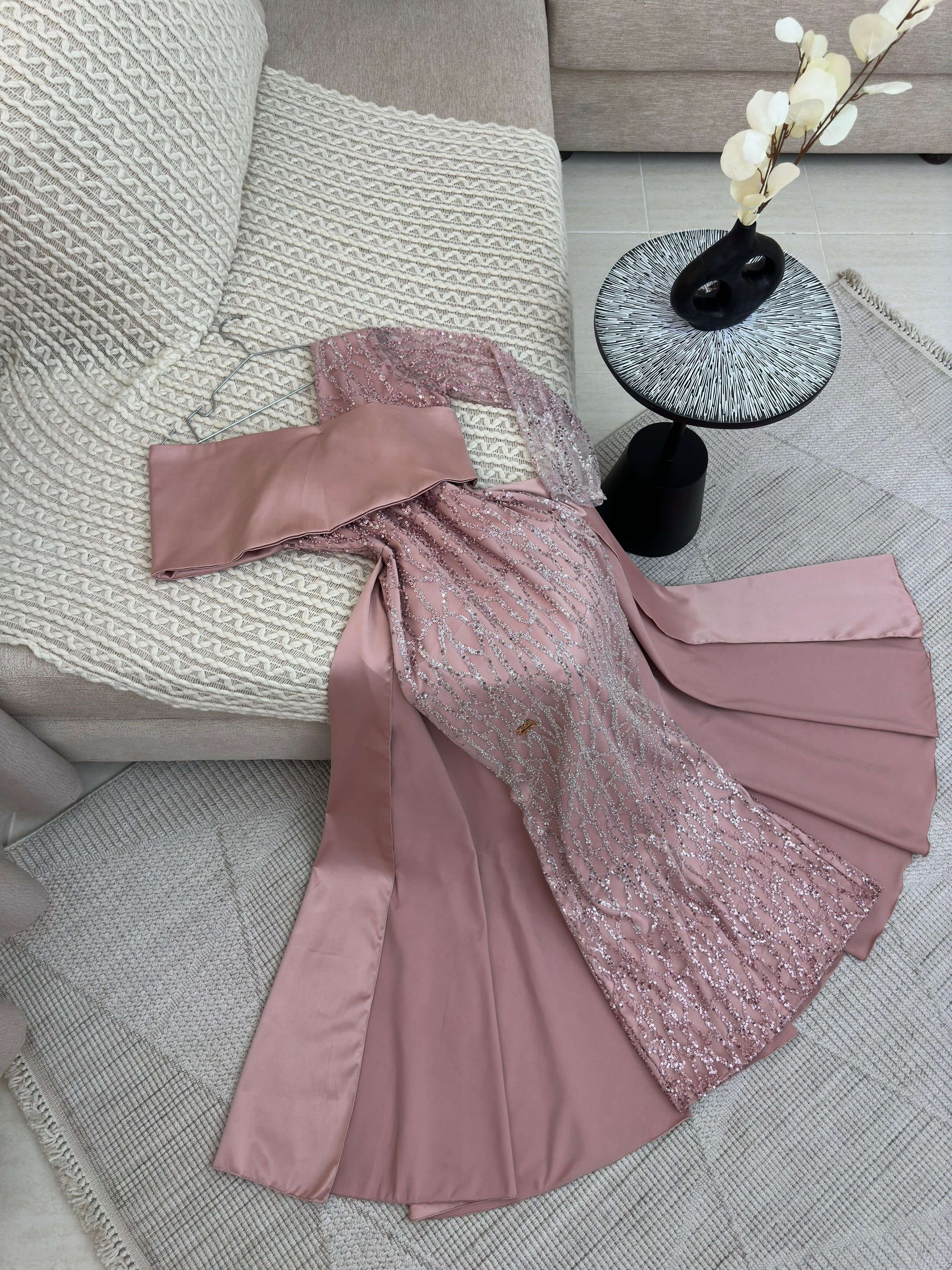 تألقي في مناسباتك الخاصة مع هذا الفستان الفاخر باللون الأخضر الفاتح، المزيّن بتفاصيل ورود ثلاثية الأبعاد تضفي لمسة رومانسية راقية. يتميز بقصّة متناسقة تبرز جمال القوام، وخامة فاخرة تمنحك راحة وأناقة طوال السهرة. خيار مثالي للأعراس، حفلات الخطوبة، والمناسبات المميزة.