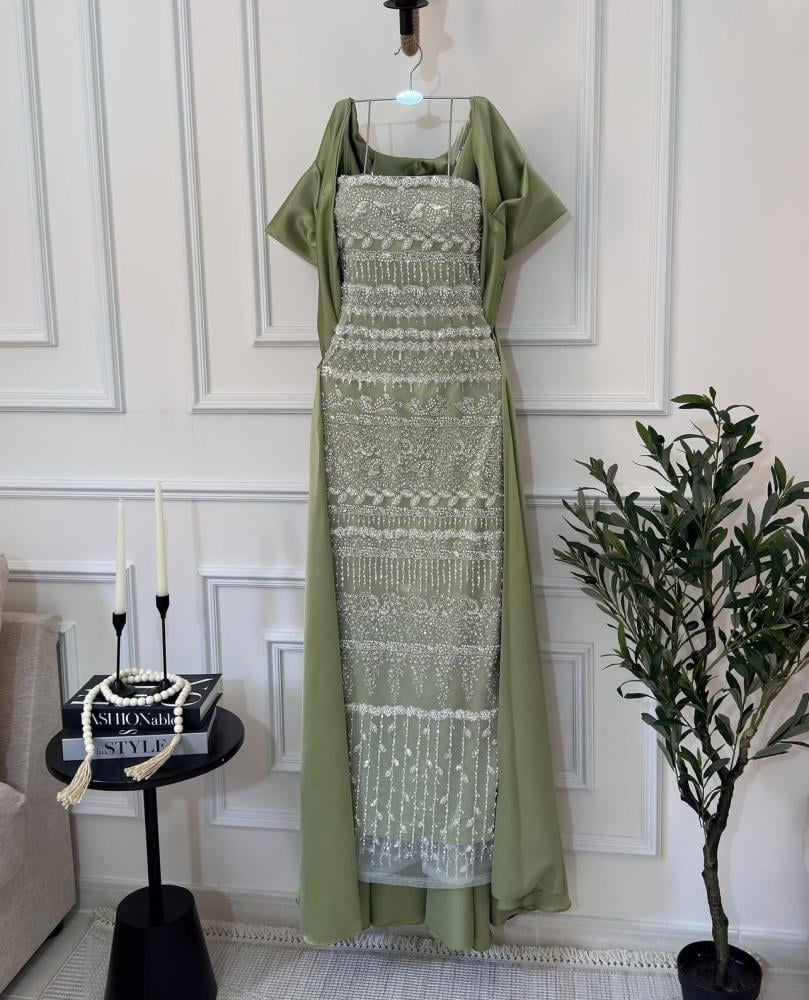 التطريز اليدوي الفاخر بالكريستال اللامع على طول الفستان يضفي بريقًا ساحرًا يلمع تحت الأضواء، ليجعلك محط أنظار الجميع في السهرات، حفلات الزفاف والمناسبات المميزة.