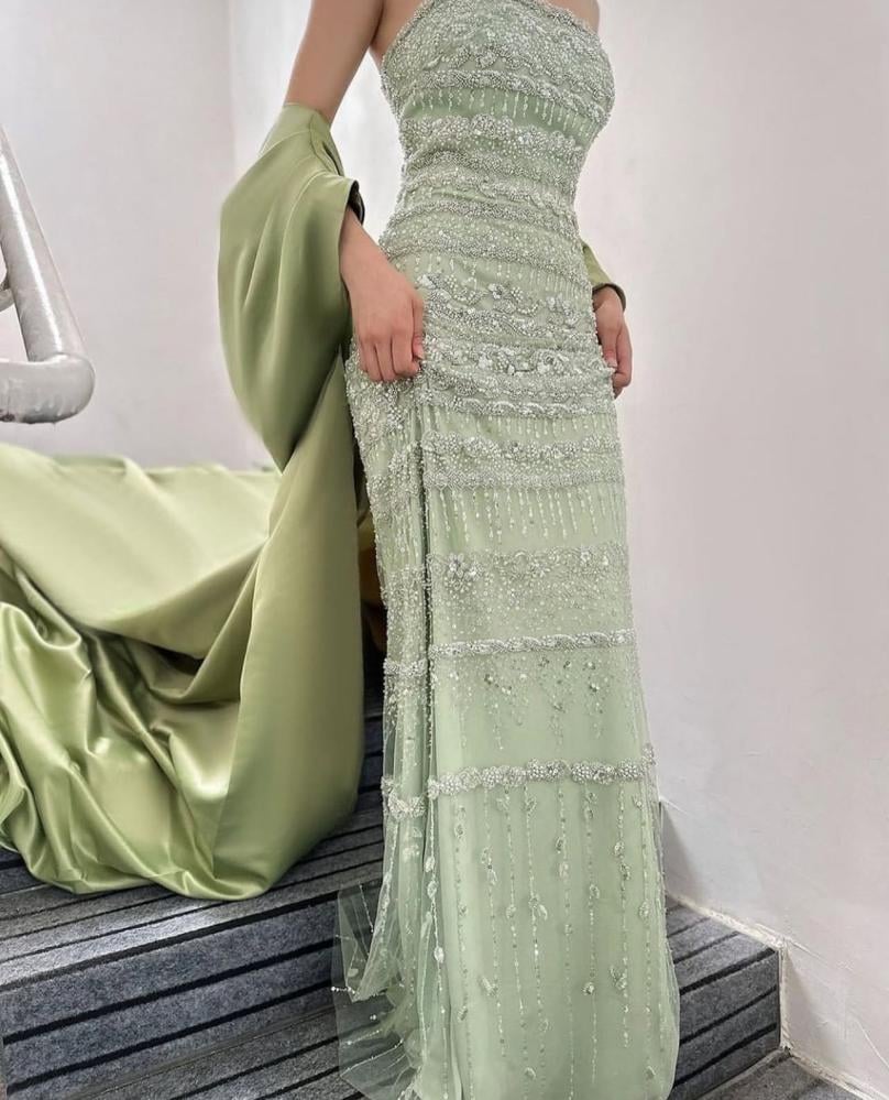 هذا الفستان الأخضر الفاتح الساحر يجسد الفخامة والرقي بتصميم يلفت الأنظار في كل مناسبة. يتميز بقصة ضيقة انسيابية تبرز جمال القوام وتمنحك حضورًا أنثويًا متألقًا. الصدرية بدون أكمام تضيف لمسة عصرية جريئة، بينما الانسدال الطويل من القماش الفاخر يمنحك إطلالة ملكية.