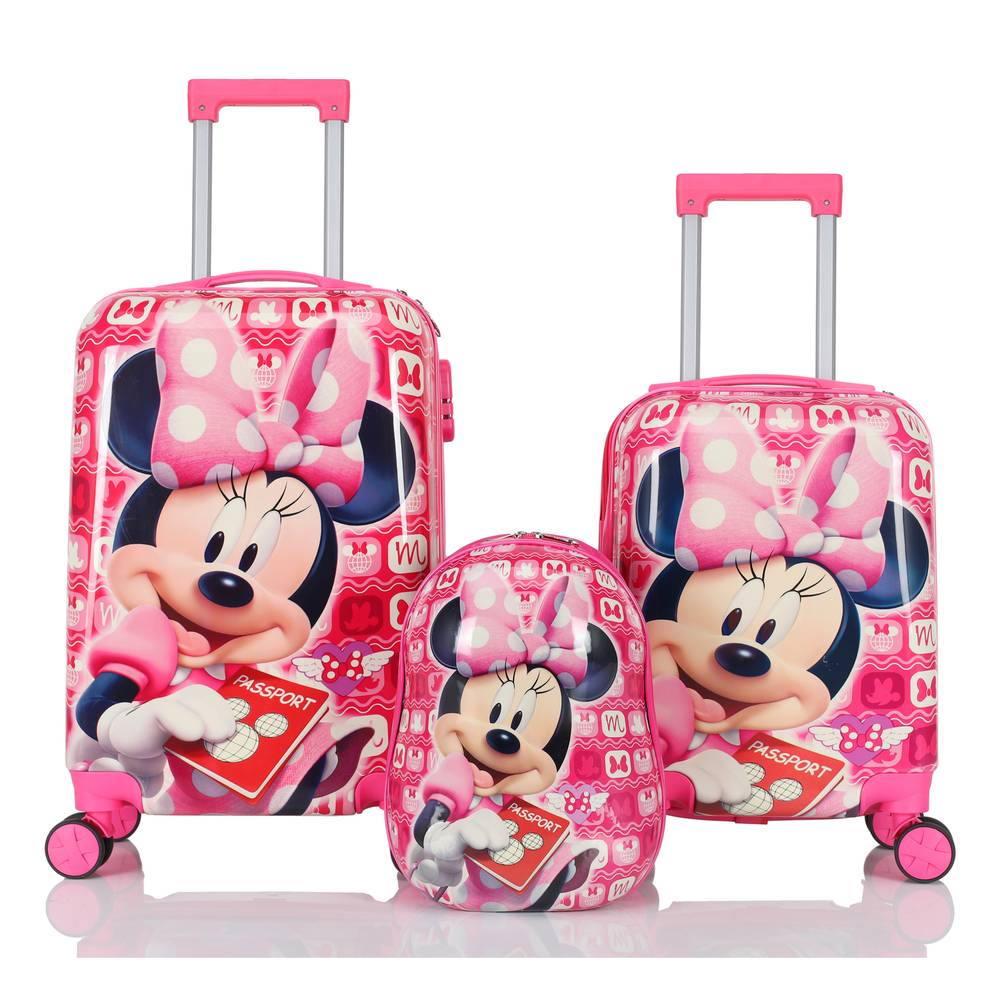 أضيفي لمسة من البهجة لرحلات طفلتك مع طقم شنط ميني ماوس للأطفال المكوّن من 3 قطع عملية بتصميم كرتوني مميز. مصنوع من خامة PC بولي كربونات عالية الجودة وخفيفة الوزن ليجمع بين المتانة والراحة.