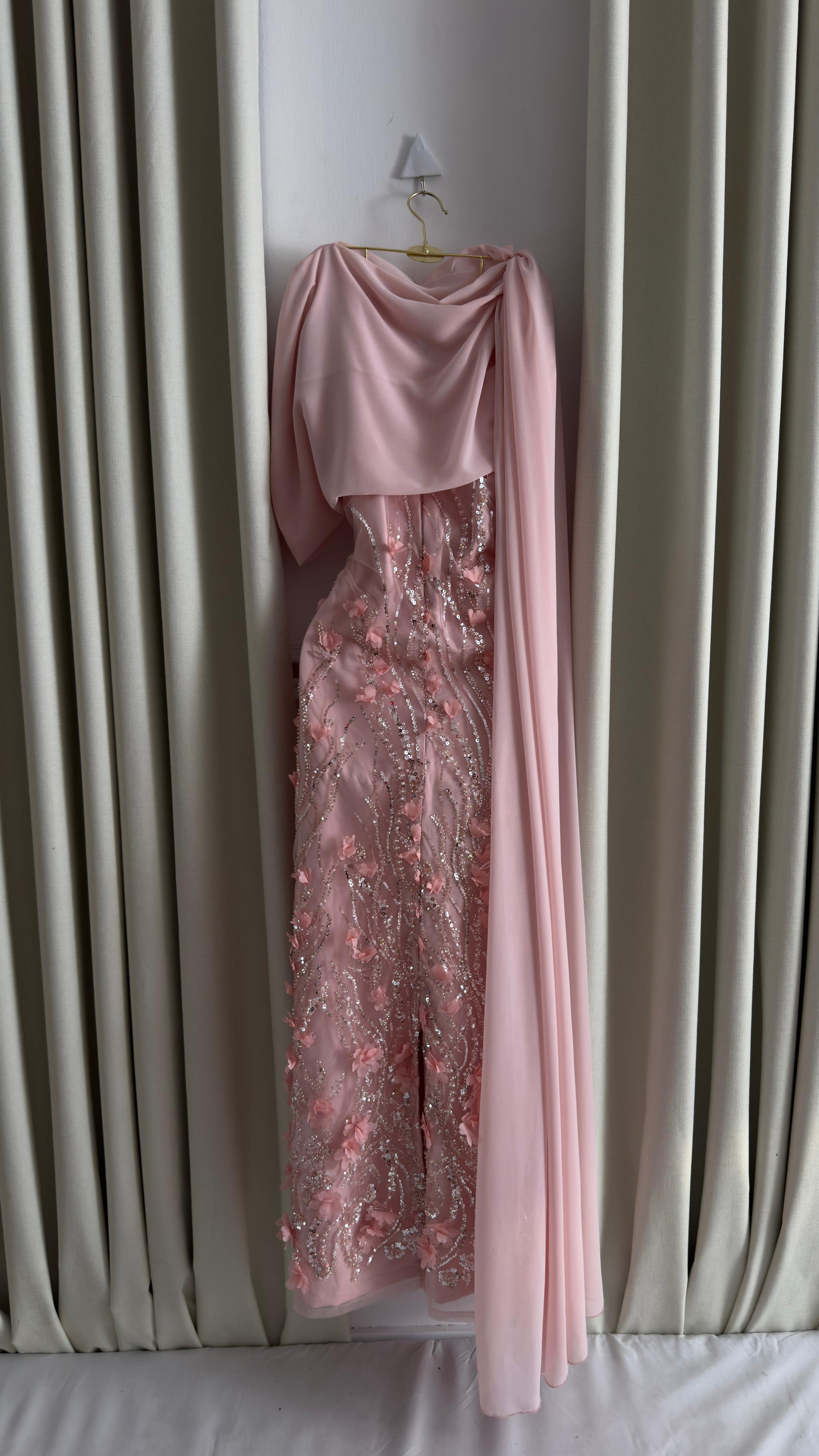فستان وردي يحاكي الرقي والأنوثة في أجمل صورها.