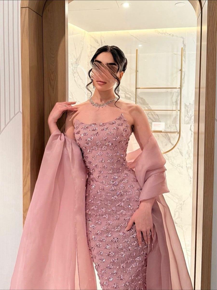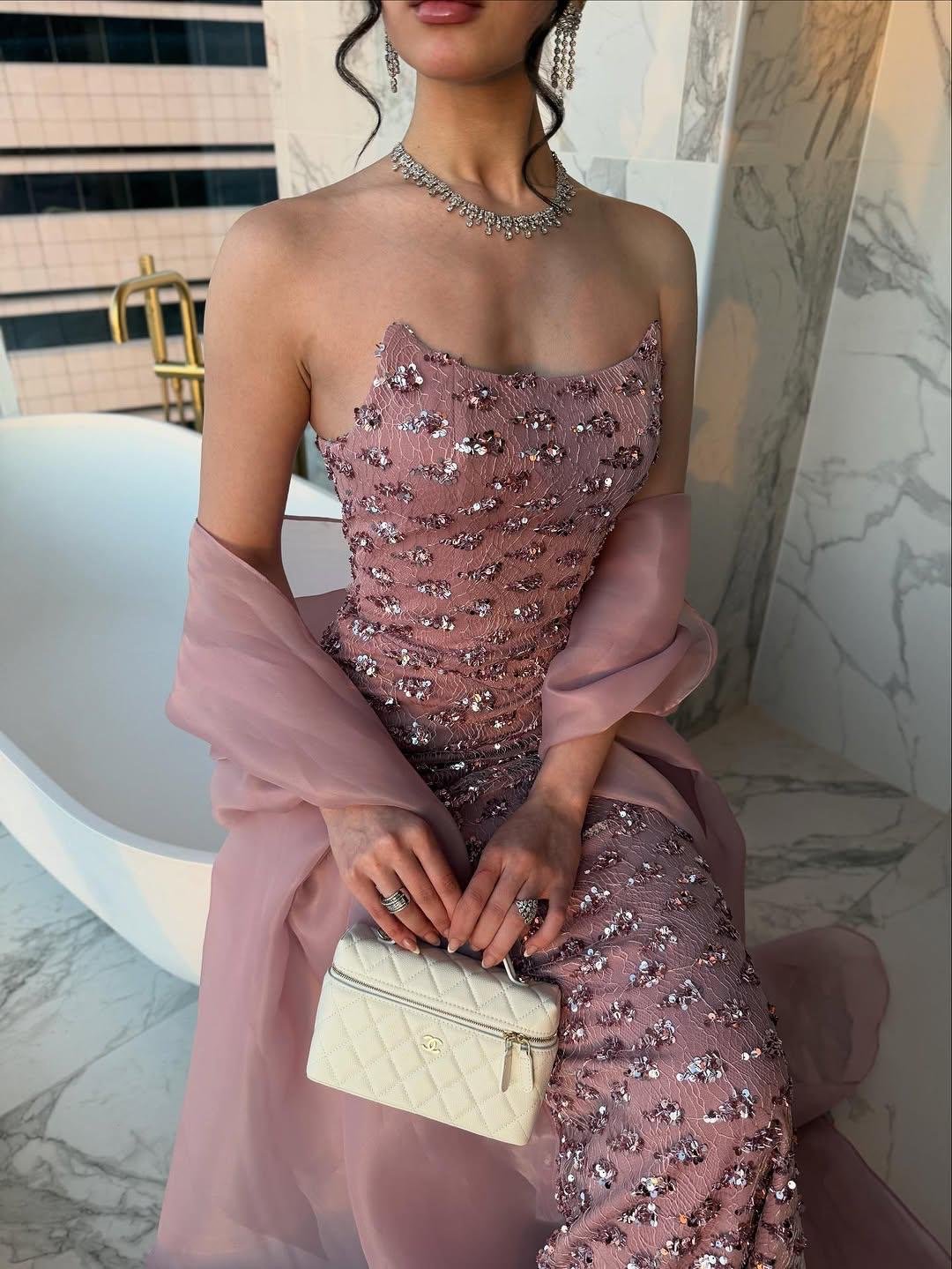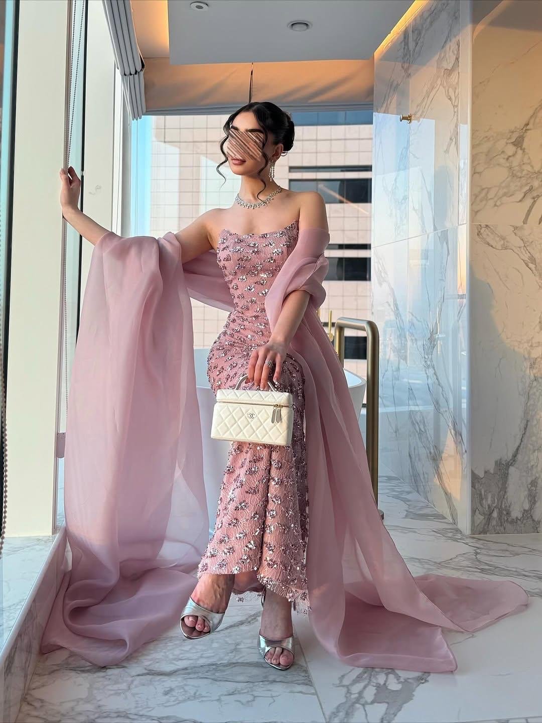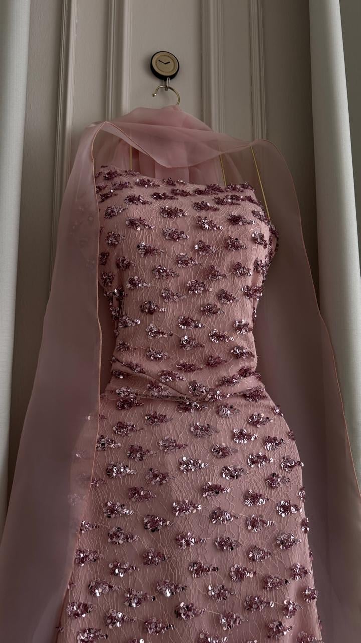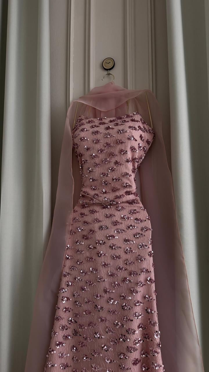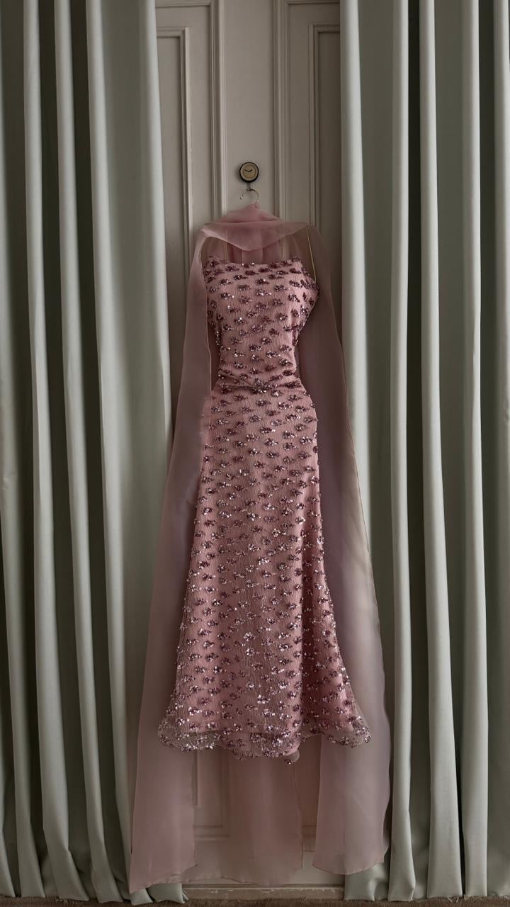 فستان وردي ساحر يعكس أنوثة حالمة وفخامة راقية.