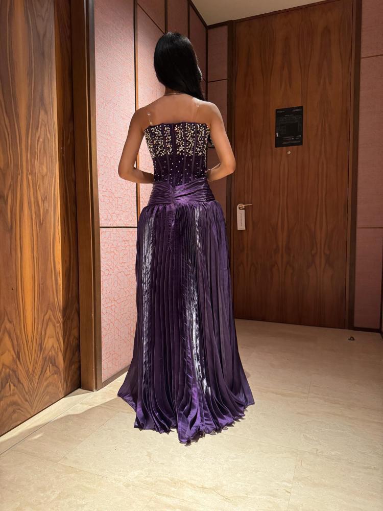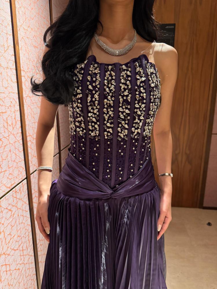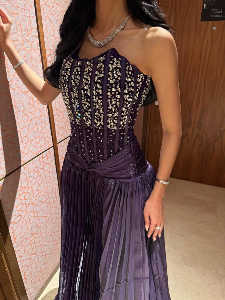 تألقي بأناقة ملكية لا مثيل لها مع فستان البنفسجي المرصّع بكريستالات فاخرة