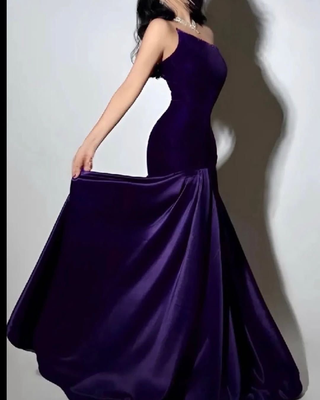 فستان سهرة فاخر باللون البنفسجي الملكي، مصمم بقماش ساتان حريري لامع يمنح حضورًا أنثويًا راقيًا. يتميز بقصة ضيقة عند الخصر مع تنورة واسعة منسدلة تضفي لمسة درامية ساحرة. خيار مثالي لإطلالة مبهرة في السهرات والمناسبات الخاصة.