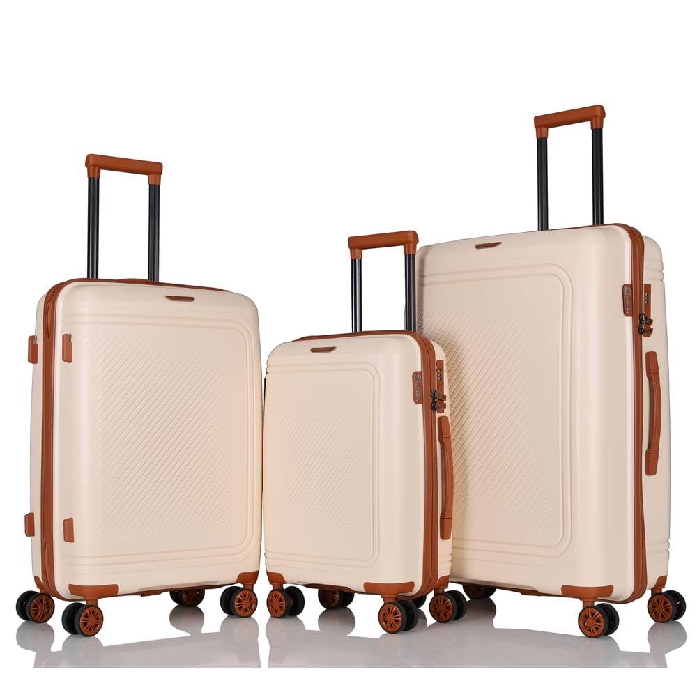 أضيفي لمسة من الأناقة لرحلاتك مع هذا الطقم العملي من شنط السفر باللون البيك العصري مع تفاصيل جانبية أنيقة باللون البيج الغامق. يتكون الطقم من 3 مقاسات متنوعة تناسب جميع احتياجاتك: حقيبة كبيرة للرحلات الطويلة، حقيبة متوسطة للسفر القصير، وحقيبة كابينة صغيرة تناسب المقصورة.