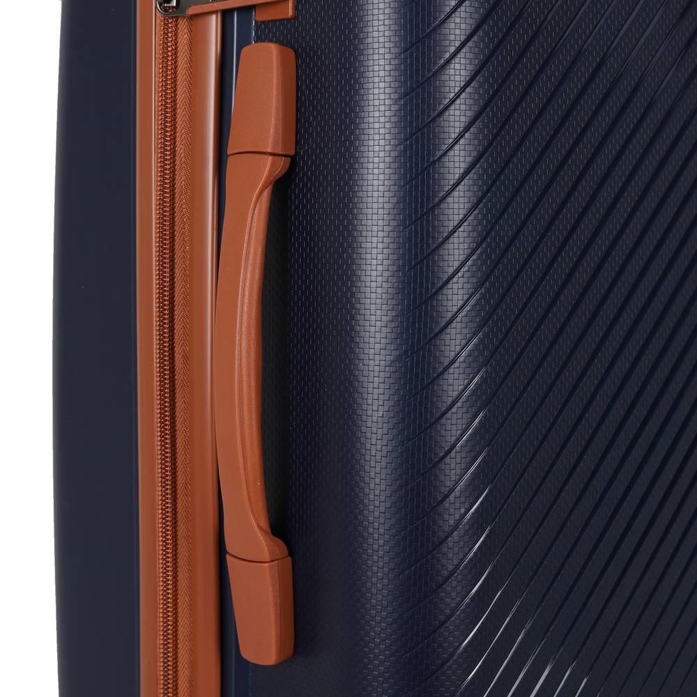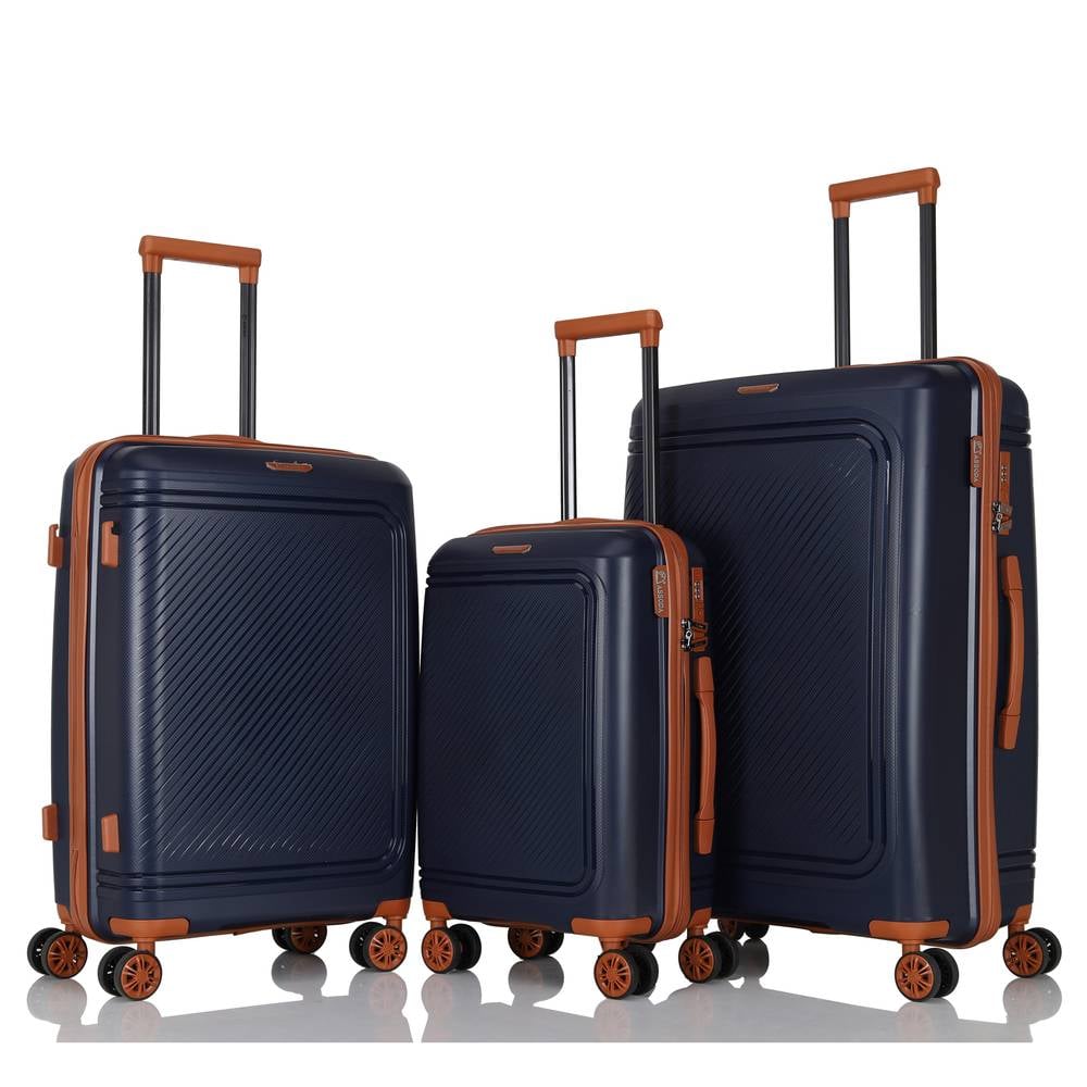 أضيفي لمسة من الأناقة لرحلاتك مع هذا الطقم العملي من شنط السفر باللون البني العصري مع تفاصيل جانبية أنيقة باللون كحلي الغامق. يتكون الطقم من 3 مقاسات متنوعة تناسب جميع احتياجاتك: حقيبة كبيرة للرحلات الطويلة، حقيبة متوسطة للسفر القصير، وحقيبة كابينة صغيرة تناسب المقصورة.