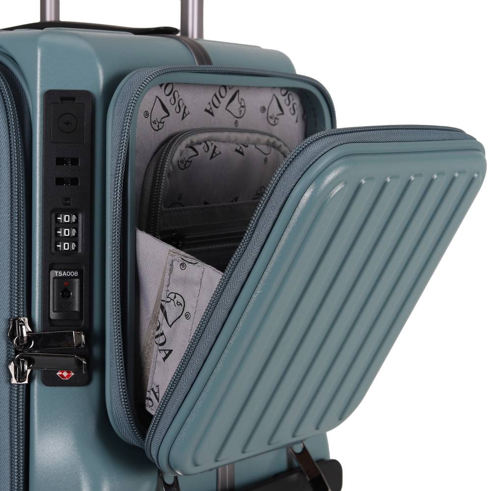 شنطة سفر تركوازي بعجلات دوارة 360 مع قفل أمان مدمج – تصميم أنيق وعصري
